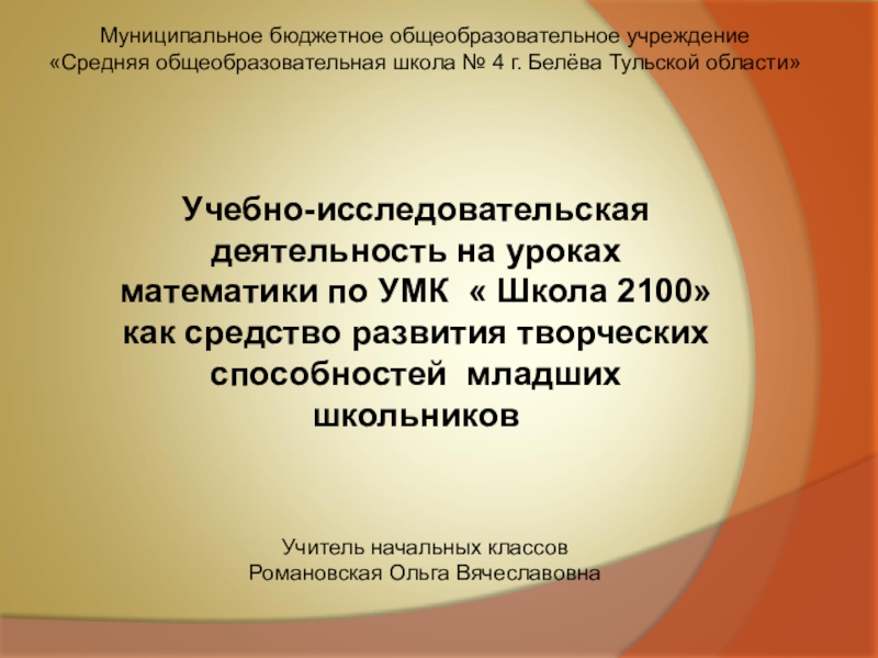 Учебно-исследовательская деятельность на уроках математики по УМК « Школа 2100» как средство развития творческих способностей младших школьников