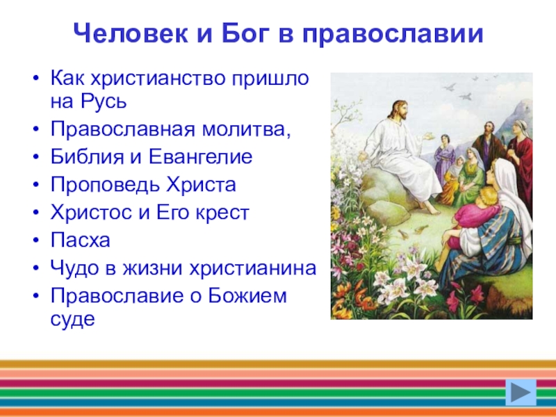 Человек и Бог в православии Как христианство пришло на Русь Православная молитва, Библия и ЕвангелиеПроповедь ХристаХристос и