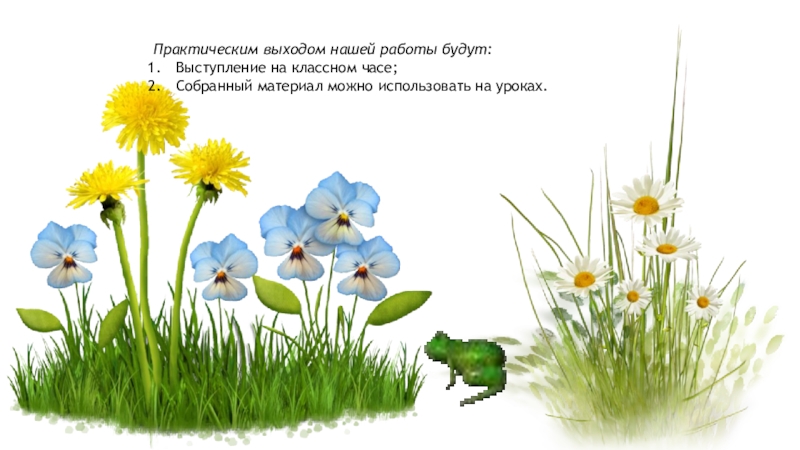 Таким образом, ученики раскрыли поставленную цель и задачи, используя поисково-исследовательский метод проекта. И поэтому проект может использоваться как дополнительный материал на уроках окружающего мира и внеклассных мероприятиях.