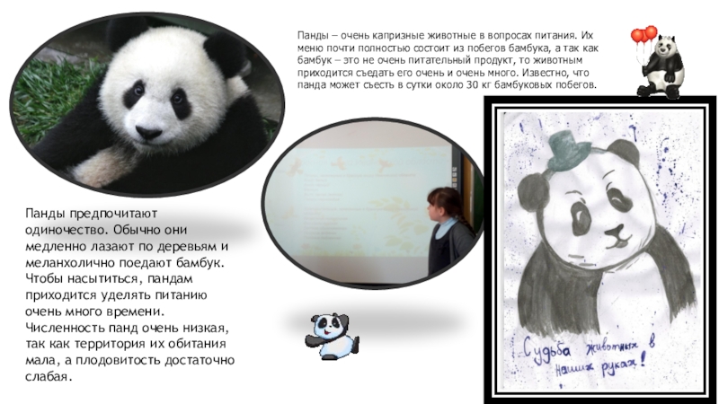 Слайд 14Панды – очень капризные животные в вопросах питания. Их меню почти
