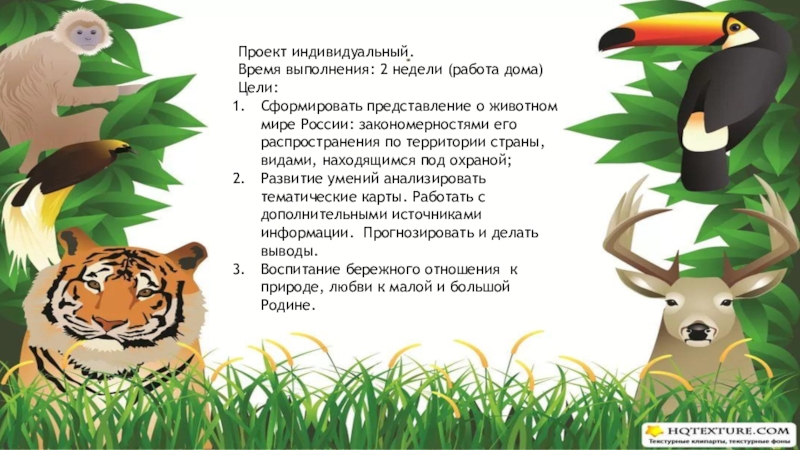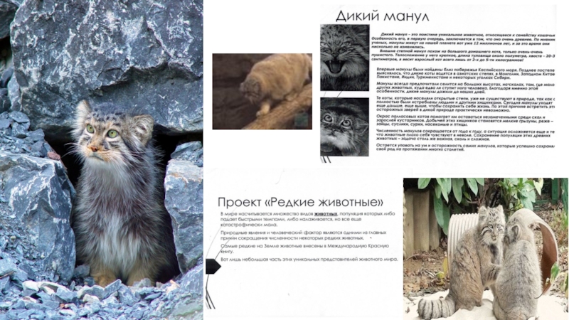 сами. Сегодня актуально знать природу, животных и растительность своей страны. На это ученик и обратил большое внимание, собрав материал из библиотек, и с использованием источника Интернет. В данном проекте ученики описывают жизнь редких животных, собран богатейший материал об их видах, кормлении и обитании.