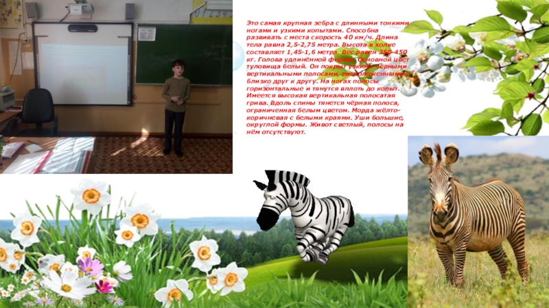 Слайд 12Это самая крупная зебра с длинными тонкими ногами и узкими копытами.