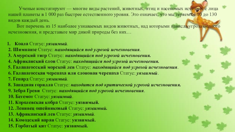 Слайд 11 Ученые констатируют — многие виды растений, животных,