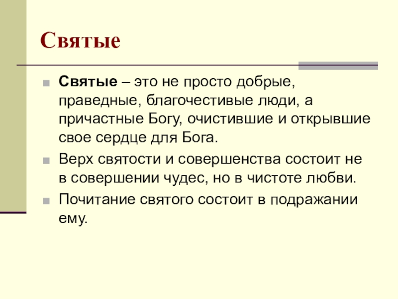 Святые – это не просто добрые, праведные, благочестивые люди, а причастные