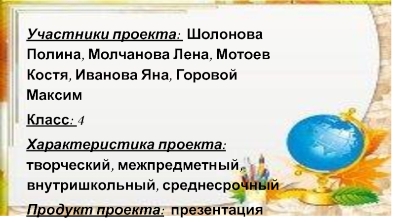 Это сайт презентаций, где можно хранить и обмениваться своими презентациями, докладами, проектами, шаблонами в формате PowerPoint с другими пользователями. Мы помогаем школьникам, студентам, учителям, преподавателям хранить и обмениваться учебными материалами.