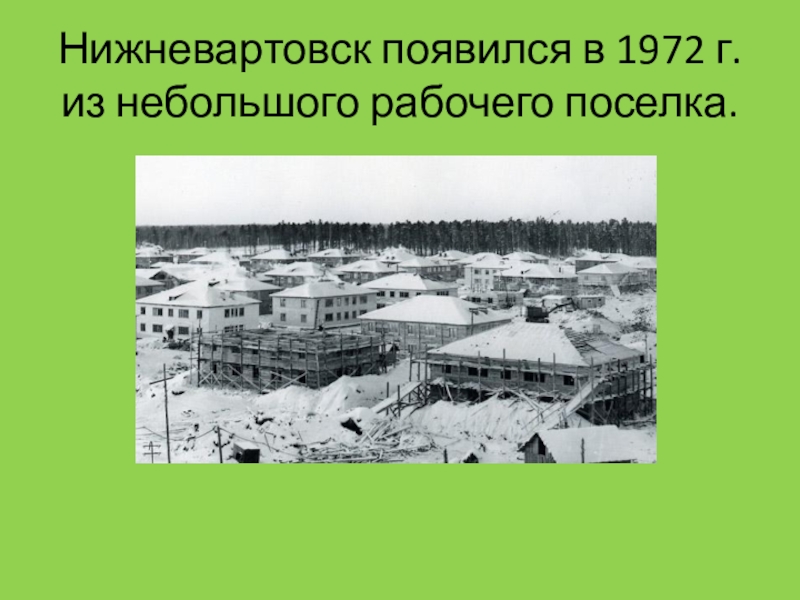 Слайд 3Нижневартовск появился в 1972 г. из небольшого рабочего поселка.