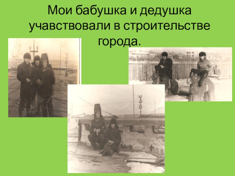 Слайд 4Мои бабушка и дедушка учавствовали в строительстве города.