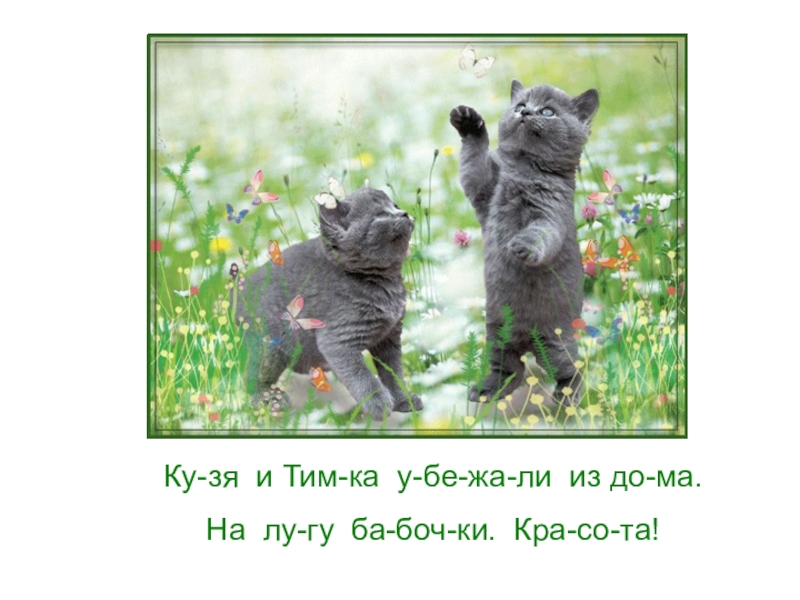 Ку-зя и Тим-ка у-бе-жа-ли из до-ма. На лу-гу ба-боч-ки. Кра-со-та!