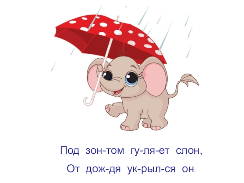 Под зон-том гу-ля-ет слон,От дож-дя ук-рыл-ся он.