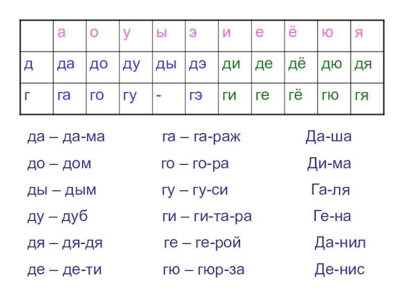 Презентация, доклад на тему Учимся читать играя. Занятие 12. Буквы Дд, Гг.