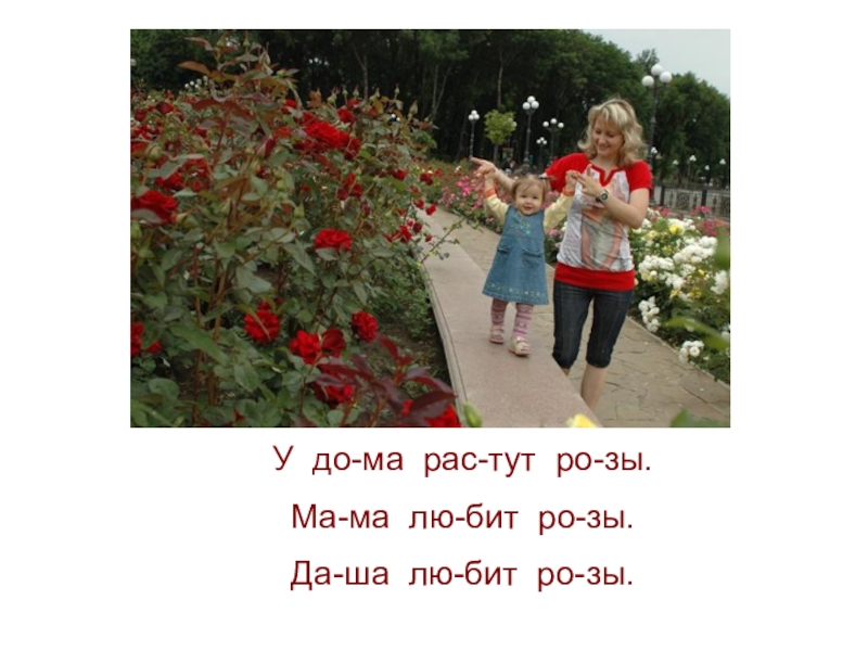 У до-ма рас-тут ро-зы.Ма-ма лю-бит ро-зы.Да-ша лю-бит ро-зы.