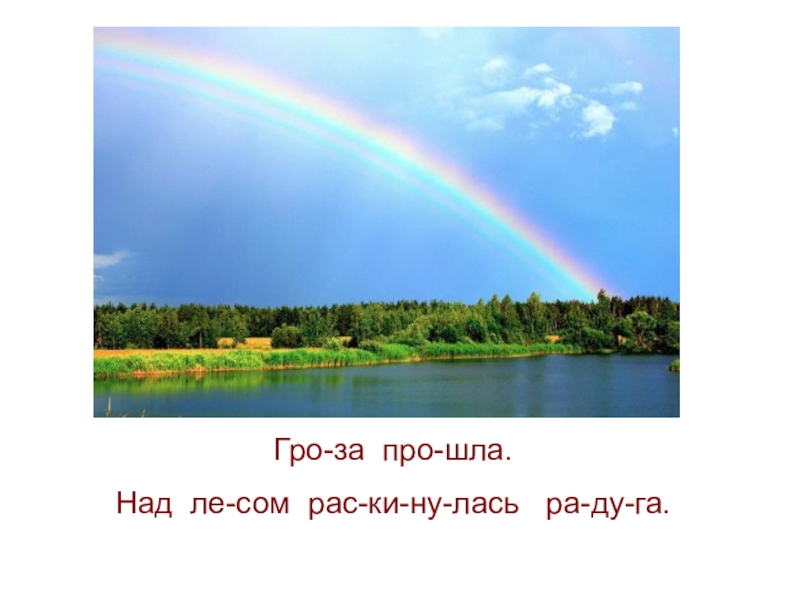Гро-за про-шла.Над ле-сом рас-ки-ну-лась  ра-ду-га.
