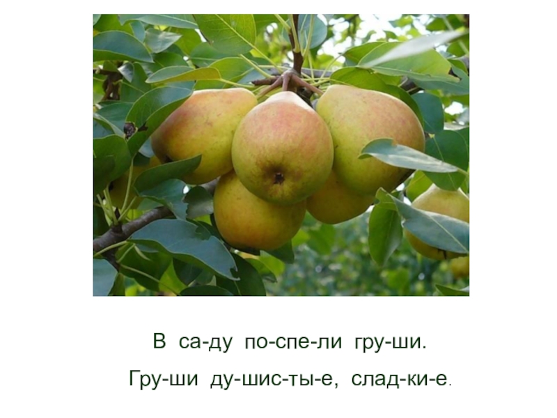 В са-ду по-спе-ли гру-ши.Гру-ши ду-шис-ты-е, слад-ки-е.