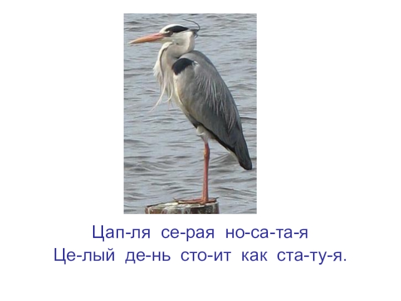 Цап-ля се-рая но-са-та-яЦе-лый де-нь сто-ит как ста-ту-я.