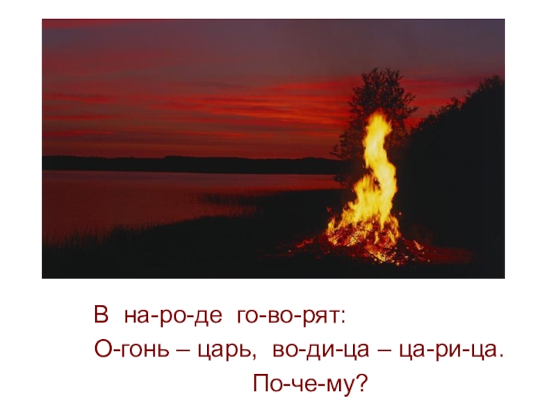 В на-ро-де го-во-рят:О-гонь – царь, во-ди-ца – ца-ри-ца.По-че-му?