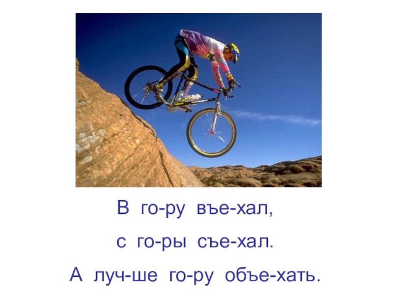 В го-ру въе-хал, с го-ры съе-хал.А луч-ше го-ру объе-хать.