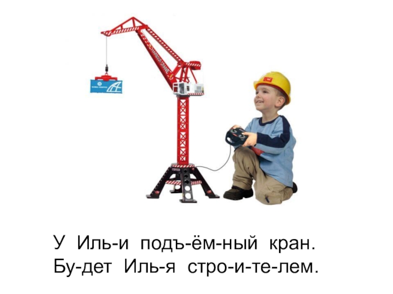 У Иль-и подъ-ём-ный кран. Бу-дет Иль-я стро-и-те-лем.