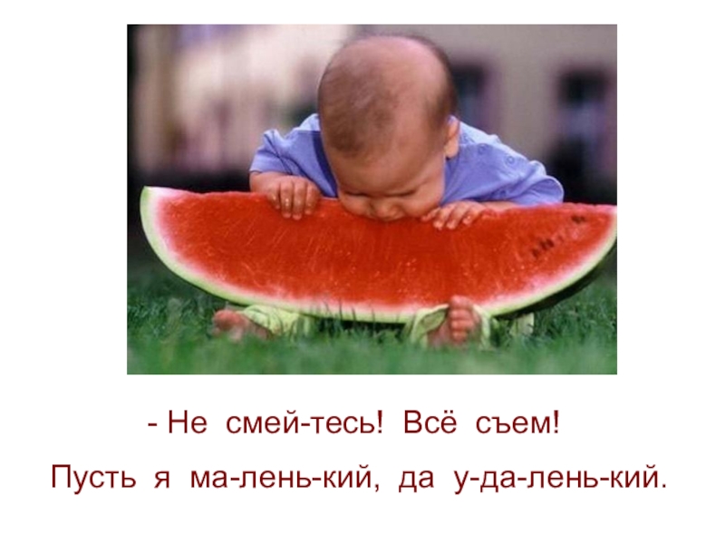 Не смей-тесь! Всё съем!Пусть я ма-лень-кий, да у-да-лень-кий.