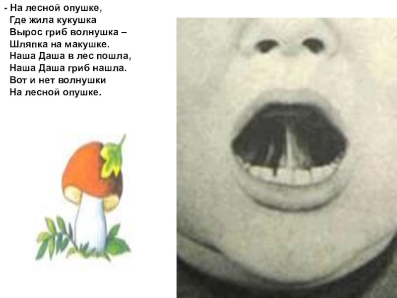 - На лесной опушке, Где жила кукушка Вырос гриб волнушка – Шляпка на макушке. Наша Даша в