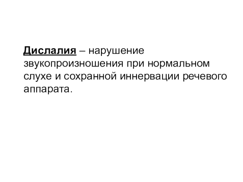 Дислалия – нарушение звукопроизношения при нормальном слухе и сохранной иннервации речевого аппарата.