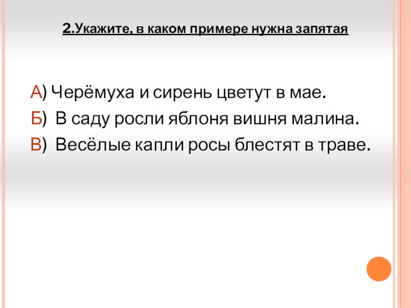 2.Укажите, в каком примере нужна запятая