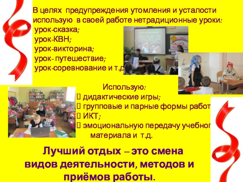 Умелое сочетание умственной и физической нагрузки, предупреждение утомлений и переутомлений важные моменты для учителя начальных классов.