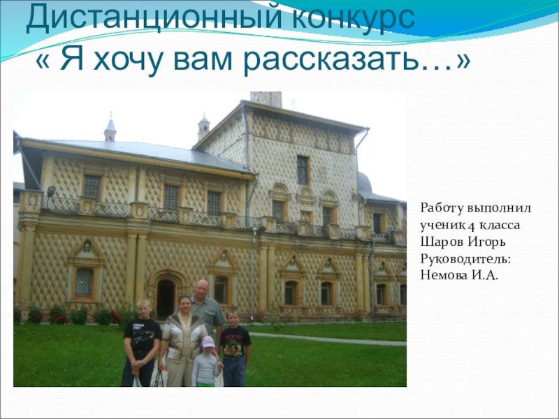 Дистанционный конкурс  « Я хочу вам рассказать…»Работу выполнил ученик 4 класса Шаров ИгорьРуководитель: