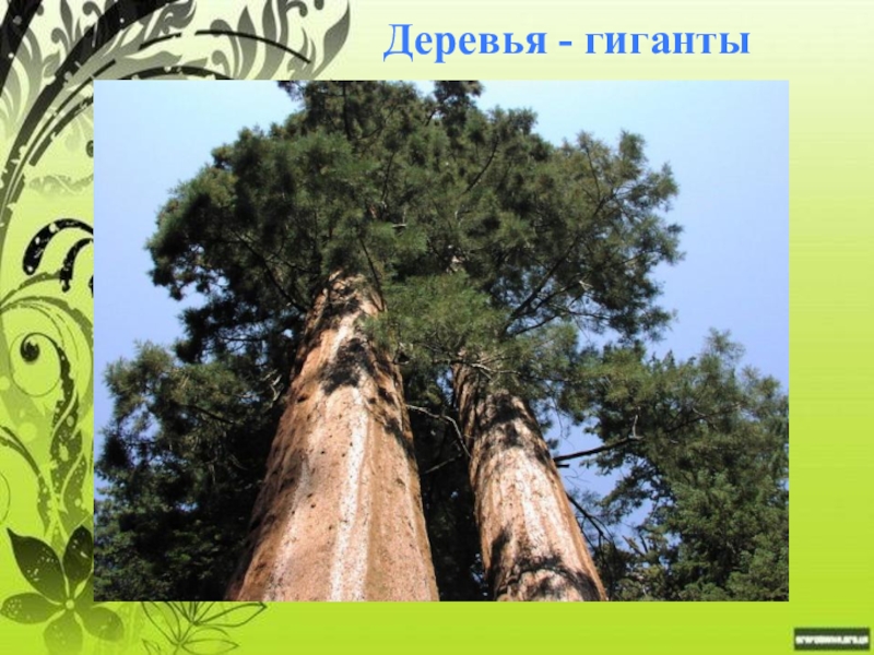 Слайд 18Мамонтово дерево бывает высотой до 100 метров с диаметром ствола до