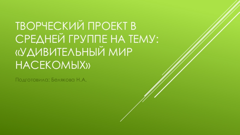 Слайд 1Творческий проект в средней группе на тему: «Удивительный мир насекомых»