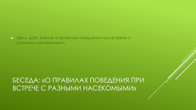 Слайд 8Беседа: «О правилах поведения при встрече с разными насекомыми»