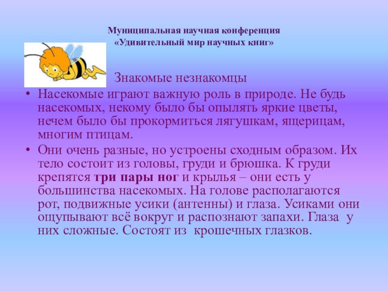 Удивителен мир насекомых! Насекомые являются одними из древнейших представителей животного мира нашей планеты. Сегодня по подсчетам ученых число известных видов насекомых достигло уже почти двух миллионов различных видов. И каждый год в этот список добавляется около семи тысяч видов насекомых, о которых ранее