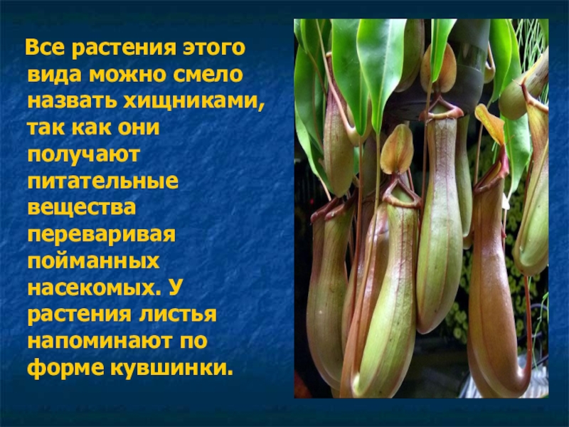 так как они получают питательные вещества переваривая пойманных насекомых. У растения листья напоминают по форме кувшинки.