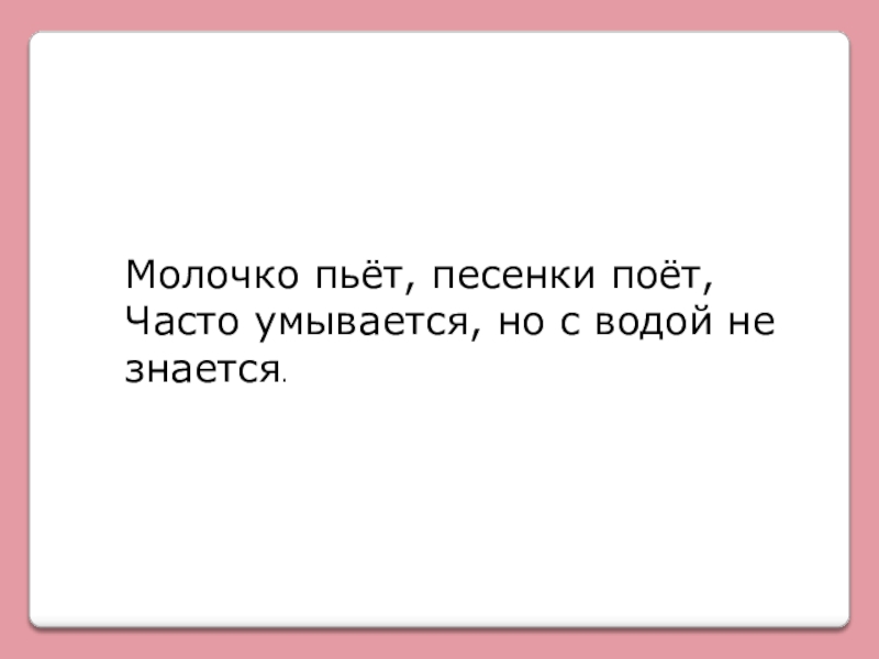 Молочко пьёт, песенки поёт,  Часто умывается, но с водой не   знается.
