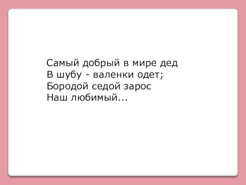 Слайд 35Самый добрый в мире дед В шубу - валенки одет; Бородой седой зарос Наш
