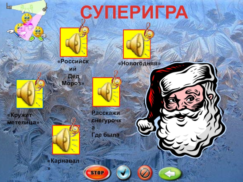 СУПЕРИГРА«Российский Дед Мороз»«Новогодняя»Расскажи снегурочка Где была «Карнавал»«Кружит метелица»