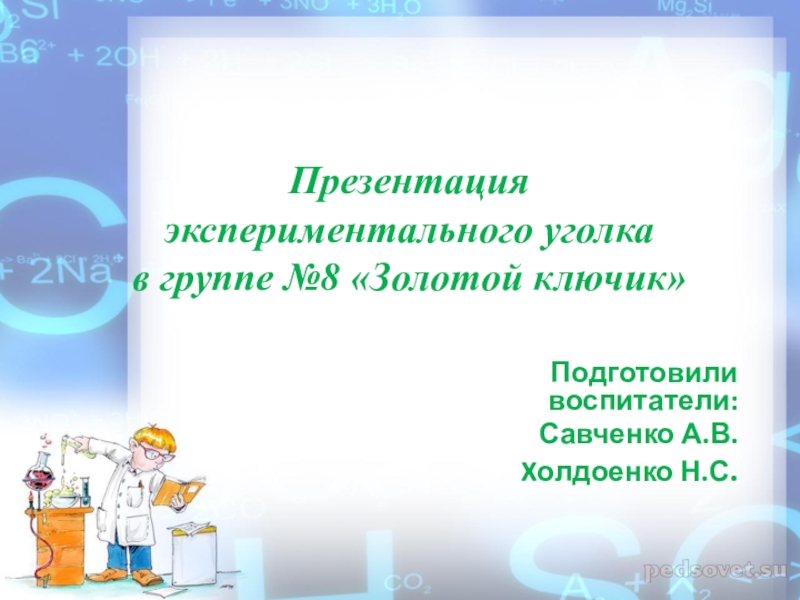 Слайд 1Презентация экспериментального уголка в группе №8 «Золотой ключик»