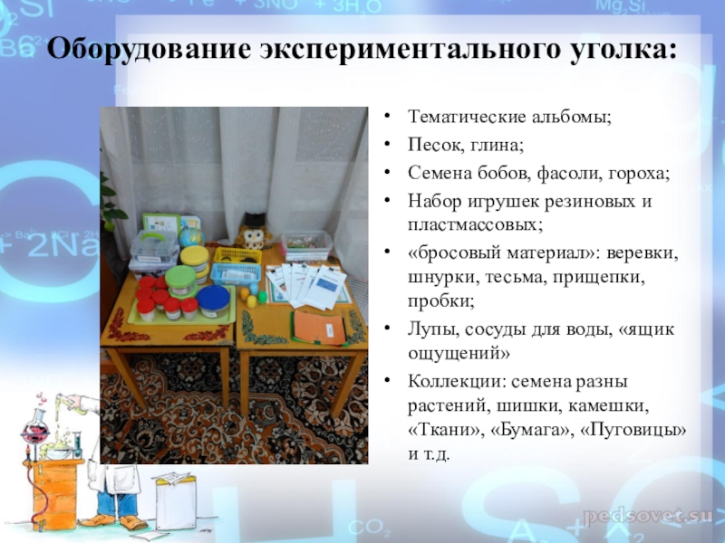 Слайд 6Оборудование экспериментального уголка: