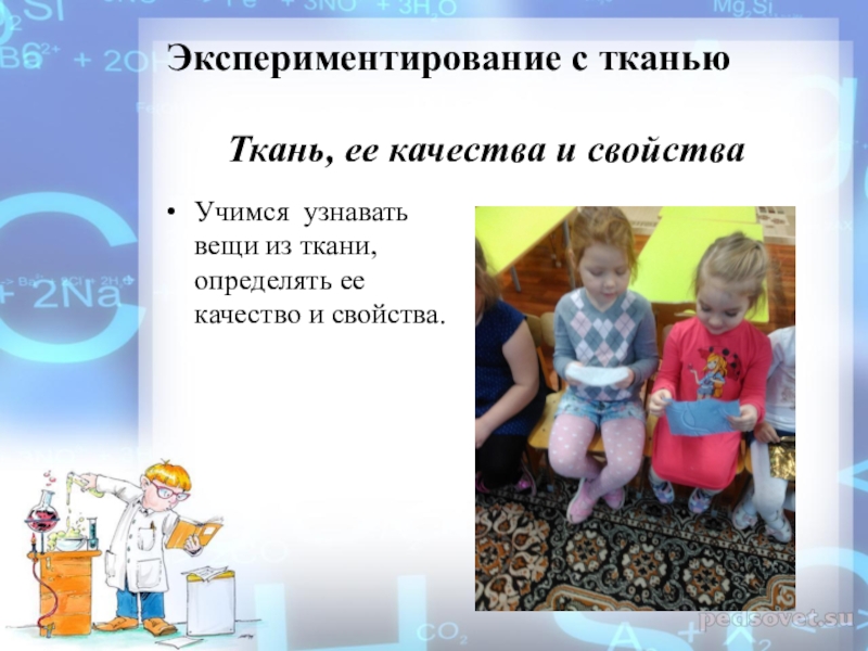 Экспериментирование с тканью Ткань, ее качества и свойстваУчимся узнавать вещи из ткани, определять ее качество и