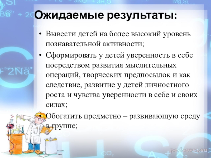 Ожидаемые результаты: Вывести детей на более высокий уровень познавательной активности;Сформировать у детей уверенность в себе посредством