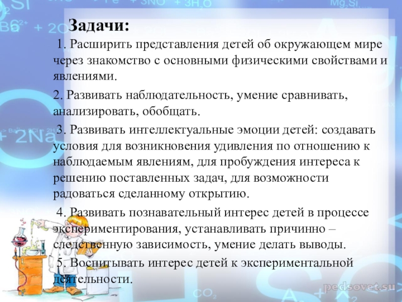 Задачи: 1. Расширить представления детей об окружающем мире через знакомство с основными физическими свойствами