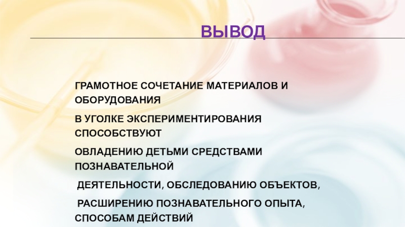 в уголке экспериментирования способствуют
