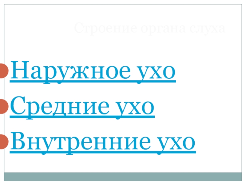 Наружное ухоСредние ухоВнутренние ухоСтроение органа слуха