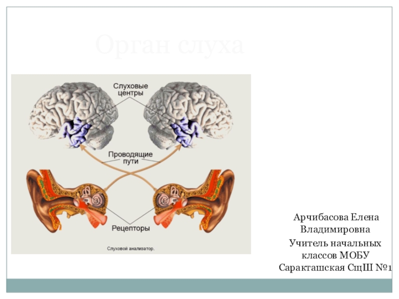 Арчибасова Елена ВладимировнаУчитель начальных классов МОБУ Саракташская СщШ №1Орган слуха