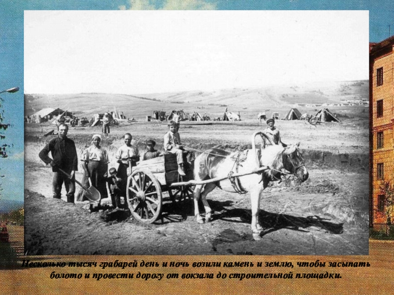 Слайд 6Несколько тысяч грабарей день и ночь возили камень и землю, чтобы