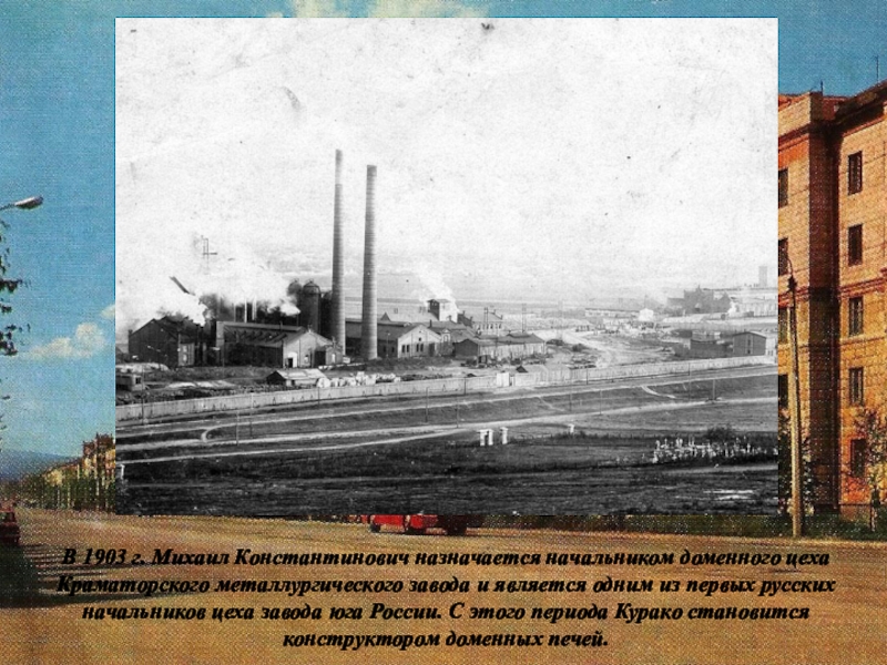 Слайд 20В 1903 г. Михаил Константинович назначается начальником доменного цеха Краматорского металлургического