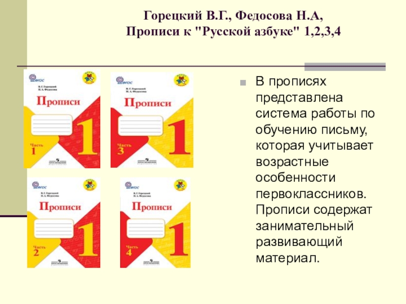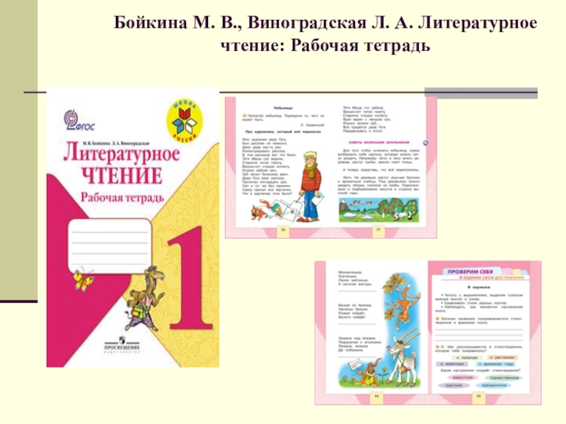 Методический аппарат учебников позволяет учителю на каждом уроке выстраивать систему работы как с не читающими, так и с уже читающими учениками. В содержание учебников включены задания для диагностики («Проверь себя»), а также материалы для проектной деятельности первоклассников.