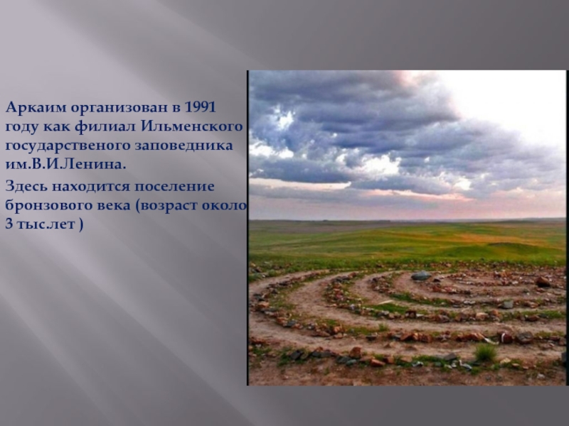 Слайд 6Аркаим организован в 1991 году как филиал Ильменского государственого заповедника им.В.И.Ленина.