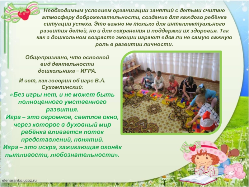 «Без игры нет, и не может быть полноценного умственного развития.