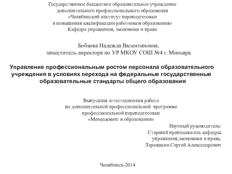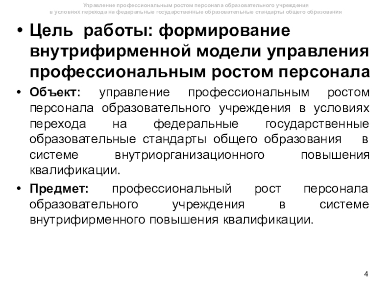 Управление профессиональным ростом персонала образовательного учреждения