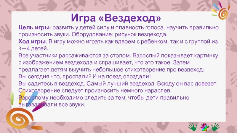 правильно произносить звуки. Оборудование: рисунок вездехода.